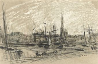 Ink chalk and pastel on paper