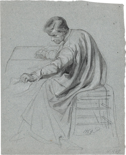 | Kostümstudie: Schreiber bei der Arbeit. | |