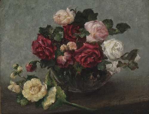 Stillleben mit Rosen und Malven.