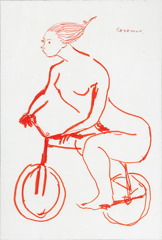 Mujer desnuda en bicicleta