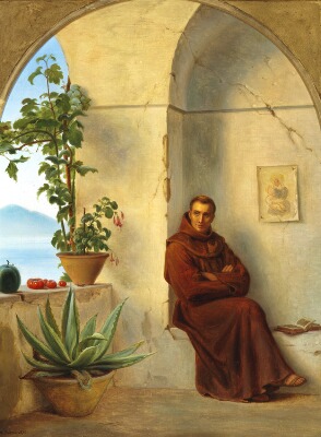 Monk in a loggia by the sea