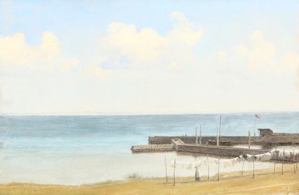 | View from Snekkersten with a woman hanging out clothes to dry | |