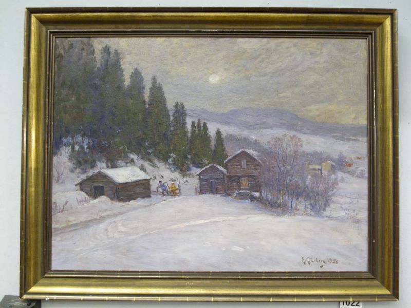 Vinterlandskap med stuga,