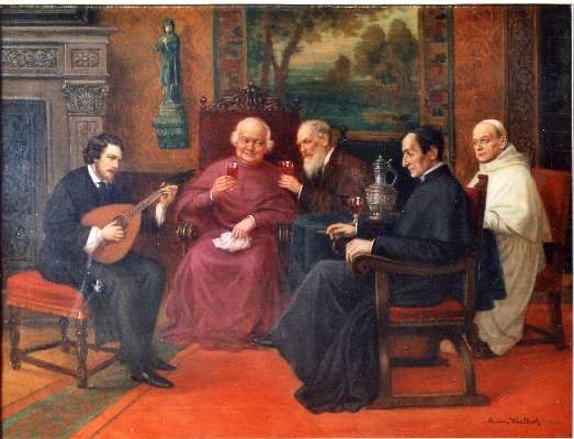 Herrenzimmerinterieur mit mehreren Personen, u.a. einem Kardinal, 1 Lautenspieler