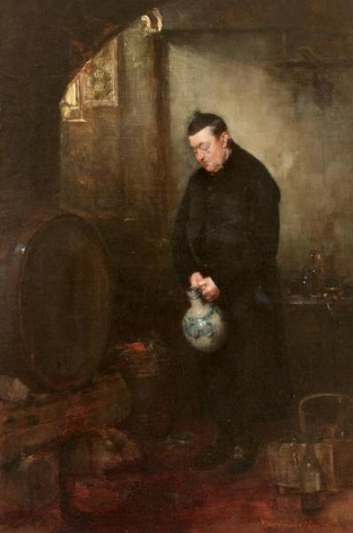 Stilles Gebet eines Mönches vor dem Weinfass.