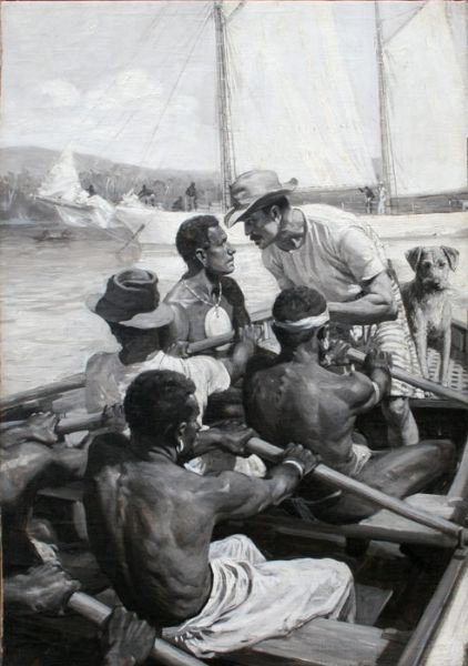 Illustration Depicting Boss with African Slaves Rowing a Boat