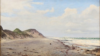 The coast of Skagen. Signed and dated A. Thorenfeld gl. Skagen 1875. Oil on canvas. 25×42.4 cm. | |