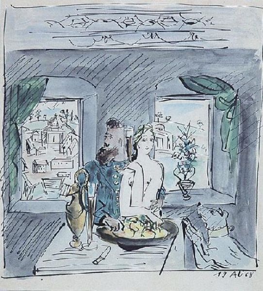 Watercolor pen, ink, paper