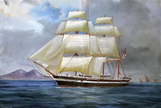Portrait of HMS Cruiser with Vesuvius beyond