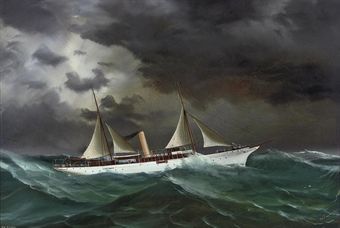 The steam yacht Evona battling the elements