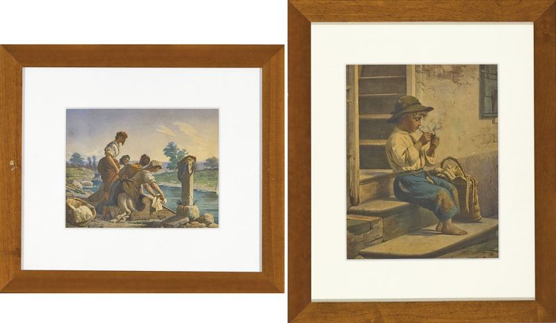 | Le lavandaie alla fontana e il giovane fumatore di pipa | |