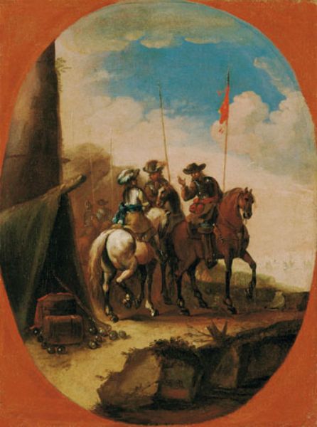 Accampamento militare con cavalieri