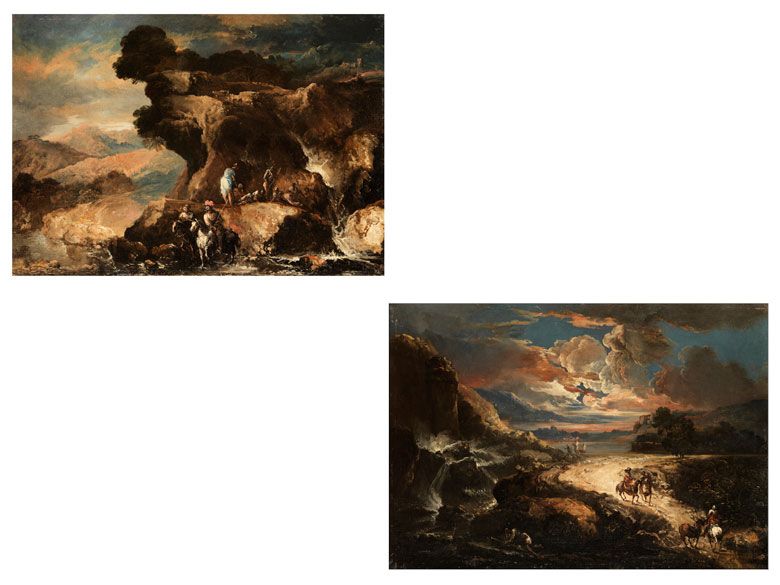 FELSENLANDSCHAFT MIT FIGURENSTAFFAGE AN EINEM FLUSSLAUF