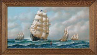 AMERICAN CLIPPER SHIP WITH THREE SCHOONERS.