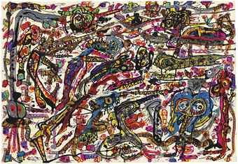Acrylic ink, watercolour, wax crayon, graphite on paper