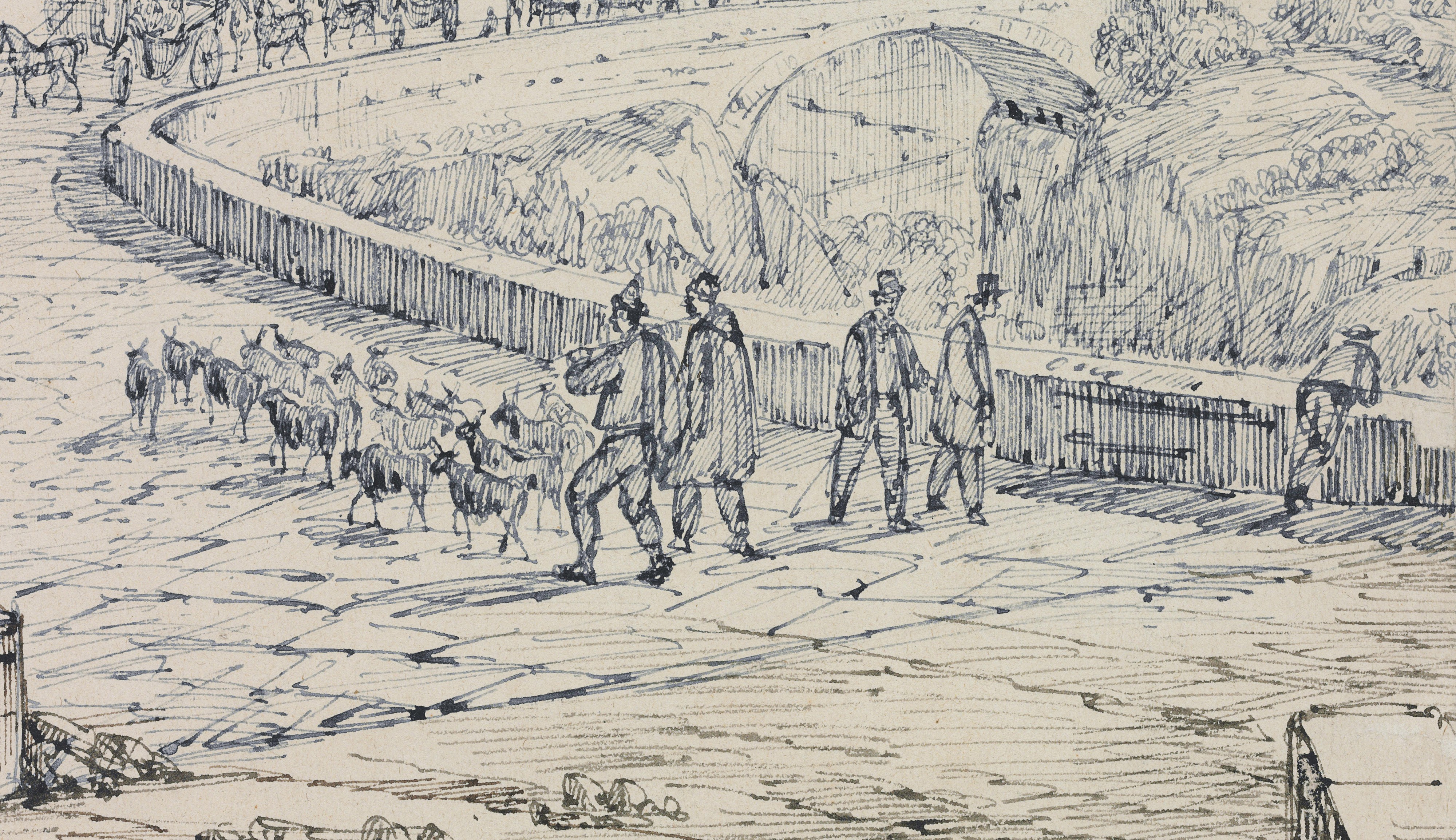 | Pen and grey and blue ink, on four joined sheets | |