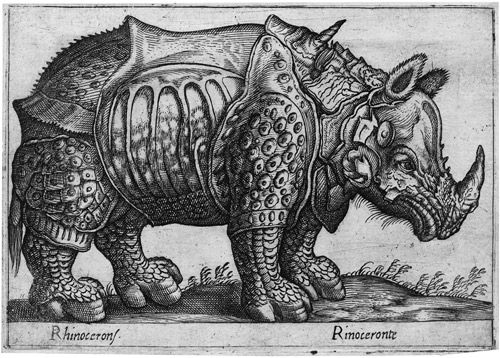 Vier Darstellungen mit exotischen Tieren