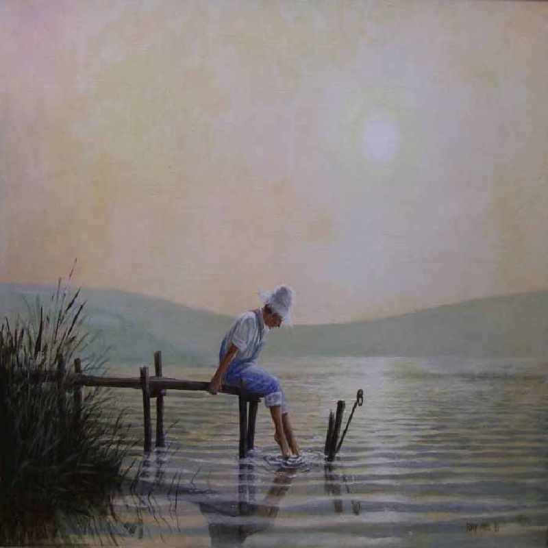 Boy seated at the end of a Pontoon