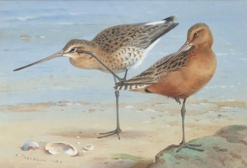 A PAIR OF BAR-TAILED GODWIT