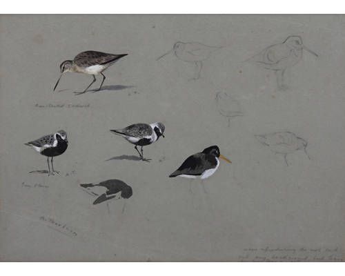 A sheet of studies Bar-tailed Godwit and Grey Plover