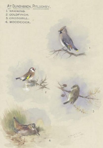 | At Dundarach, Pitlochry, study of Waxwing, Goldfinch, Crossbill, Woodcock | |
