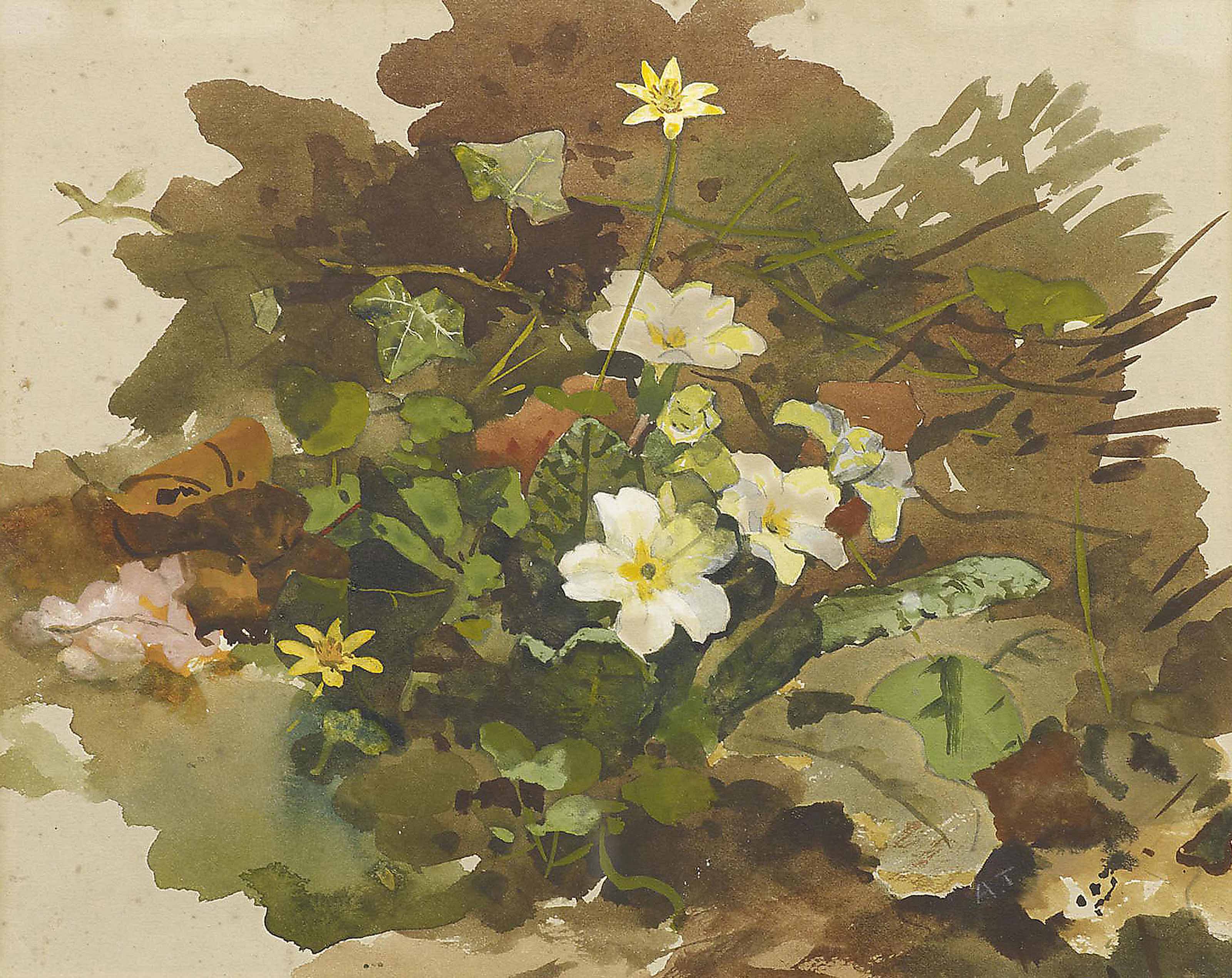 | Pencil and watercolour heightened with bodycolour on buff | |