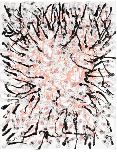 | Acrylic and acrylic tubes on canvas laid down on board | |