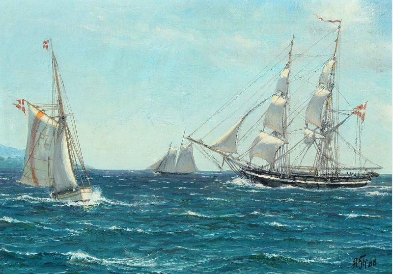 | Seascape with Danish sailing ships at the entrance to St. Thomas | |