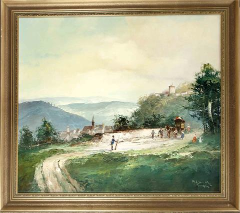| Münchner Landschafts- und Genremaler, ''Wachablösung'' in Gebirgslandschaft mit Dorf im Hintergr | |
