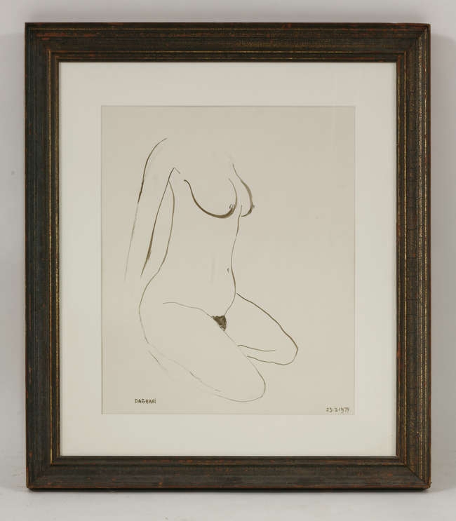 A KNEELING HEADLESS NUDE; COUPLE AT TABLE