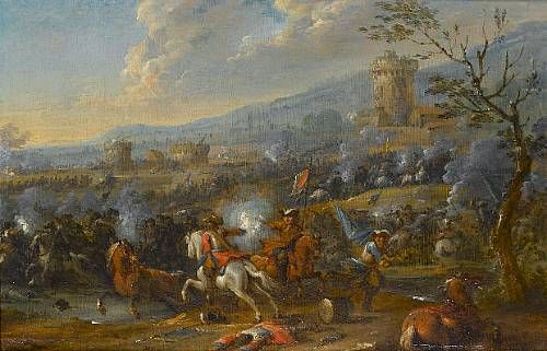 A cavalry skirmish before a fortified town