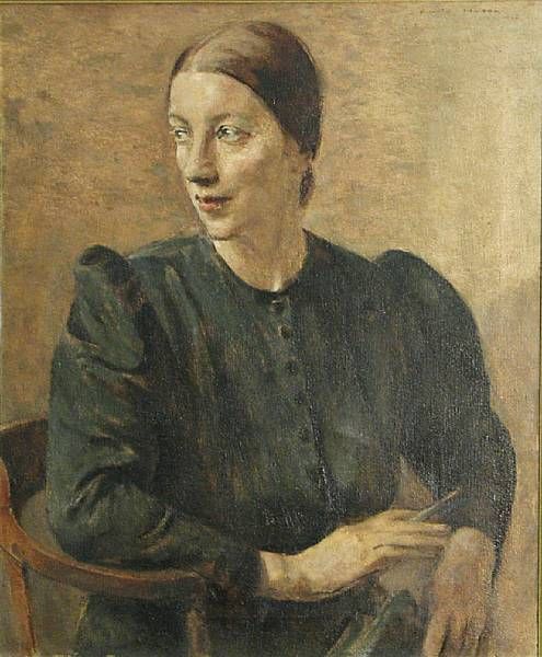 A portrait of a woman, half-length, seated, in a green dress