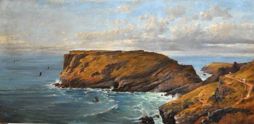 | Coastal landscape in Tintagel with figures on a pathway | |