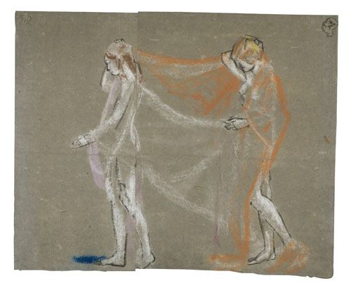 | Pastel on two conjoined pieces of greenish laid paper mounted to illustration board | |