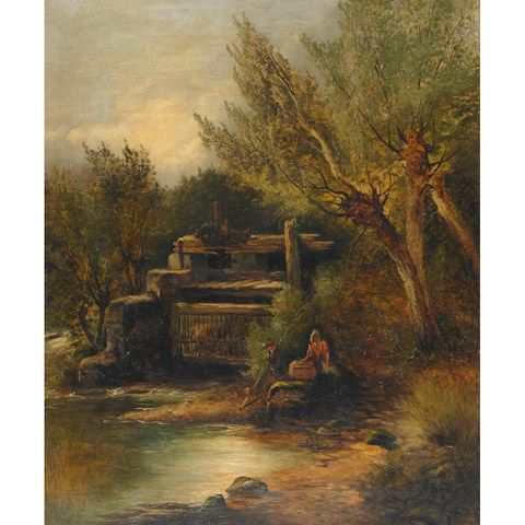 YOUNGER FISHERS AT A WOODLAND WATERGATE