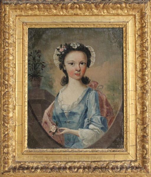 Portrait of a Young Girl holding a Rose and wearing a Blue Dress