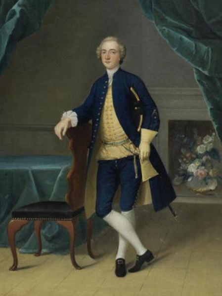 | Portrait of Mr. Thomas, full-length, in a blue coat and yellow waistcoat, standing in an interior | |