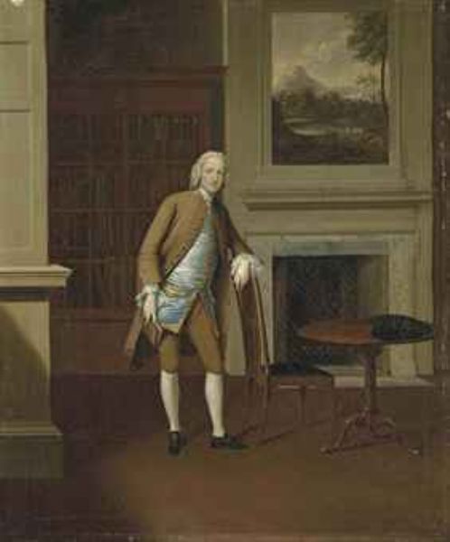 | Portrait of William Trollop, small full-length, in a brown suit and a blue waistcoat, in an interior | |