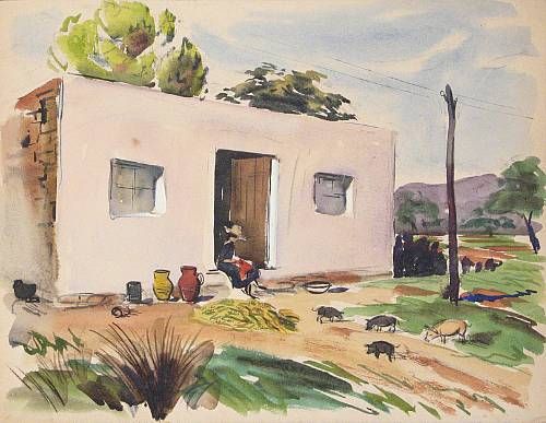 | Graphite nd watercolor on paper (one laid down on board), unframed | |