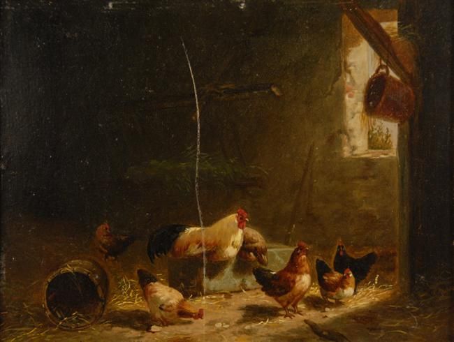 BARN INTERIOR WITH CHICKENS