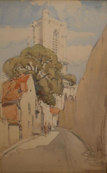 A FRENCH STREET WITH A CHURCH