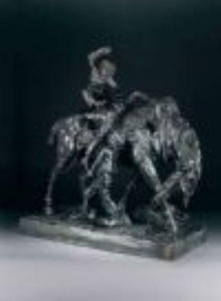GroSSe Bronzefigurengruppe mit Kindern, die auf einem Ackergaul spielen