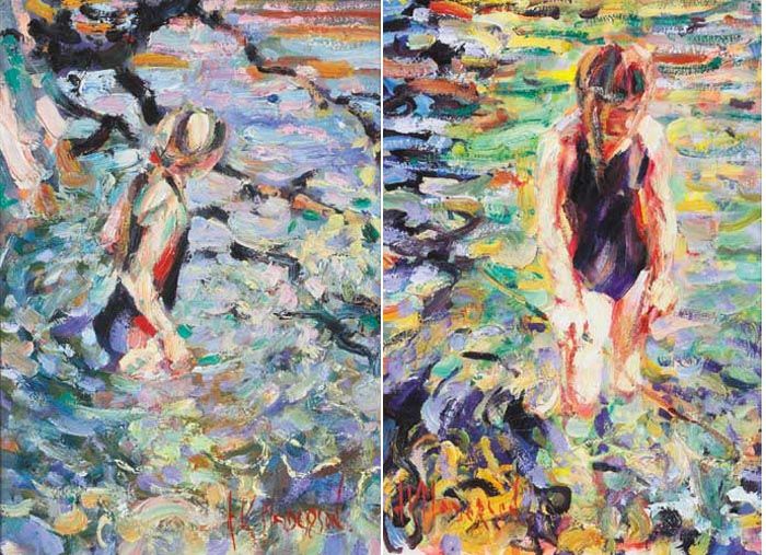 | EVENING LIGHT ON RIVER VIS and EVENING LIGHT STUDY, RIVER VIS, SOUTH OF FRANCE (A PAIR) | |