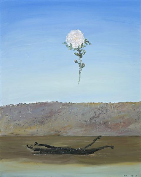 RIVER IN FLOOD WITH CARCASS AND ROSE