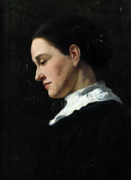 'Green and Gold', portrait study of a lady in profile wearing a green shawl