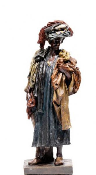 | LE MARCHAND D'ÉTOFFES The textile Merchant Épreuve en terre cuite à patine | |