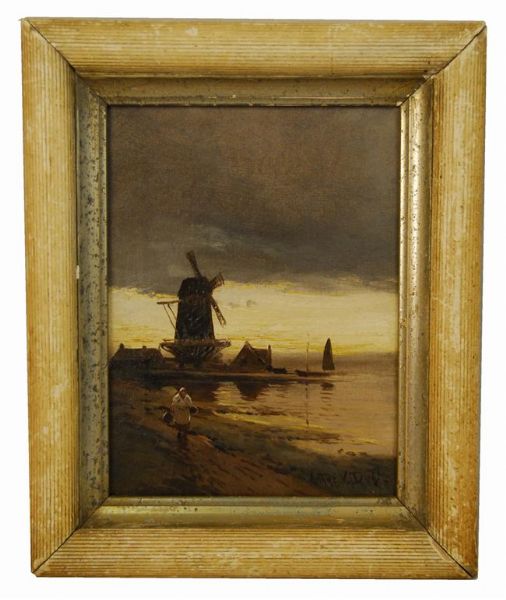 DUTCH LANDSCAPE WITH FIGURE AND WINDMILL