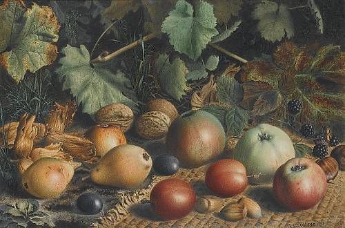 A still life of apples, pears and