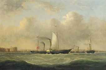 Southampton-Cowes ferries off Calshot Castle