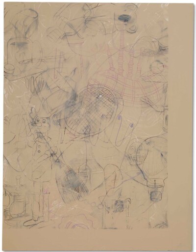 | Oil pencil, crayon, pastel and house paint on canvas | |
